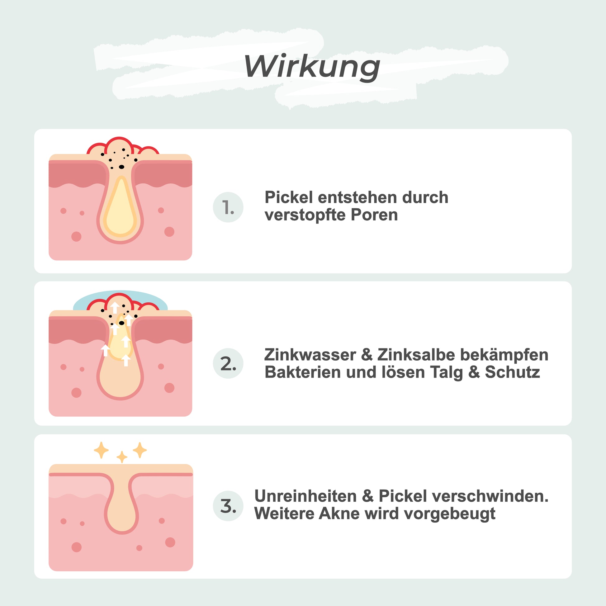 Ideal für Teenager und Erwachsene mit unreiner Haut. Wirkt punktuell bei einzelnen Pickeln oder Akne – besonders bei hormonellen oder stressbedingten Unreinheiten sowie nach dem Sport. Für den ganzen Körper verwendbar. Nicht auf offene Wunden oder großflächig stark entzündete Haut auftragen.