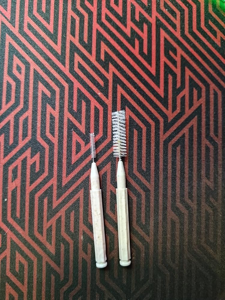 Nimm die größte Bürste, die ohne Druck in den Zwischenraum passt. Bei verschiedenen Lücken ggf. unterschiedliche Größen nutzen.