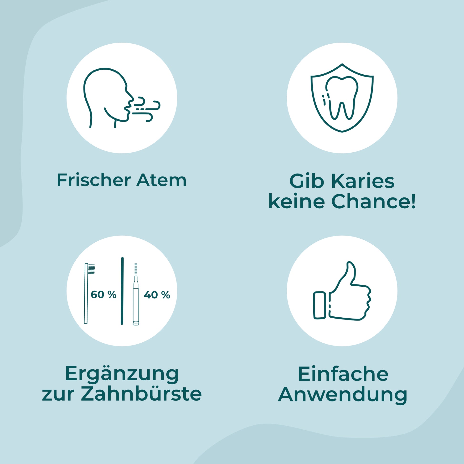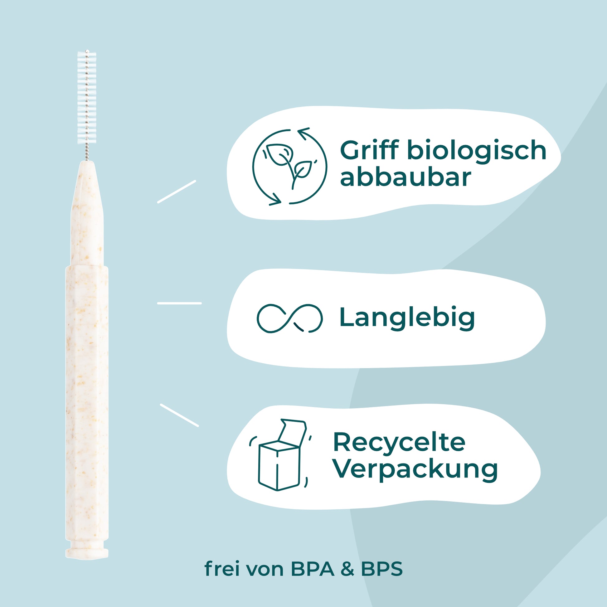 Bis zu 70 % der Karies entsteht in den Zahnzwischenräumen – genau dort, wo die Zahnbürste nicht hinkommt. Die Interdentalbürsten sorgen für eine gründliche Reinigung dort, wo es zählt.