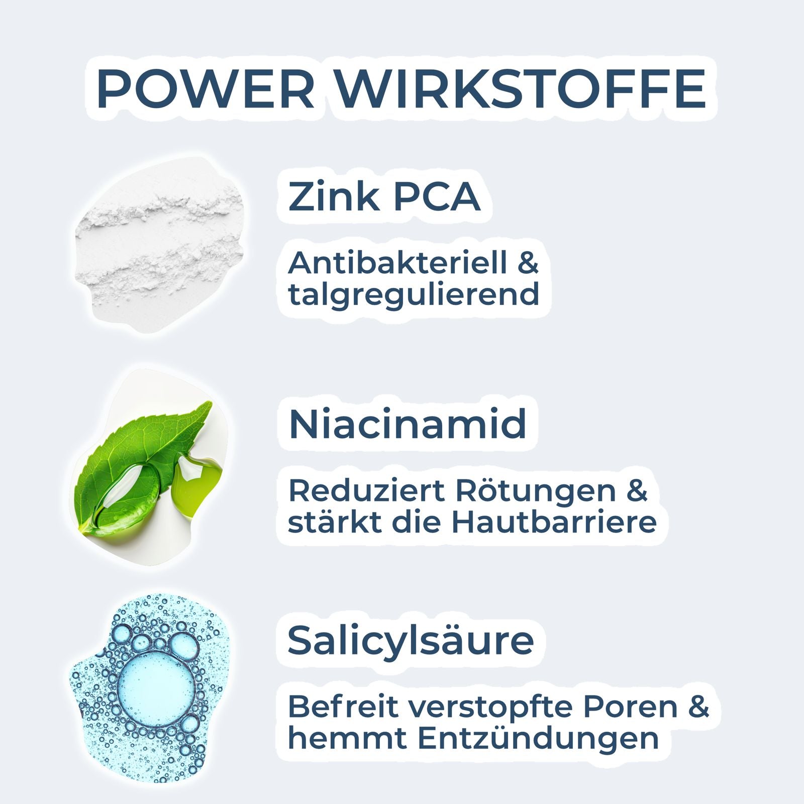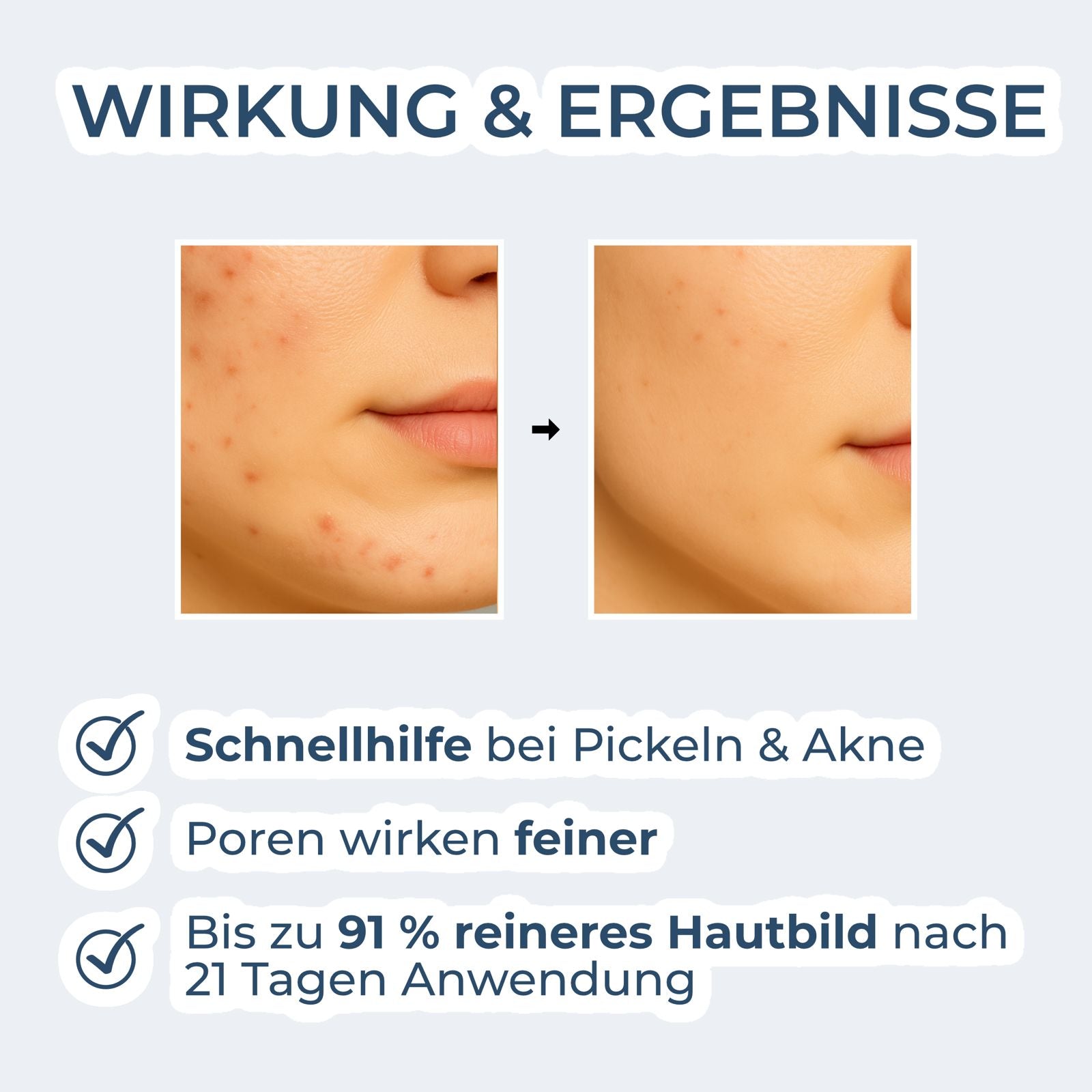 Bekämpft Bakterien, reguliert übermäßige Talgproduktion und beugt neuen Pickeln effektiv vor.